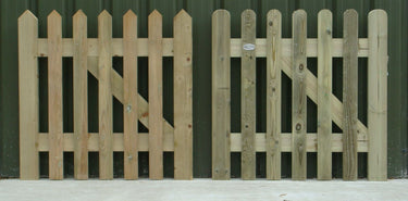 We manufacture our own Picket/Palisade gates in our workshop to customer specifications—height, width, and top—using specially selected, slow-growing, pressure-treated Scandinavian softwood.