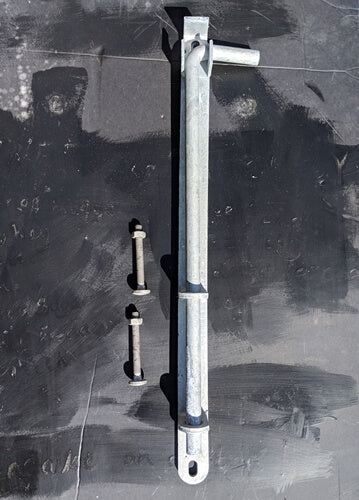 A Bolt-on drop bolt can be retrofitted to a metal field gate to hold the gate open or closed.